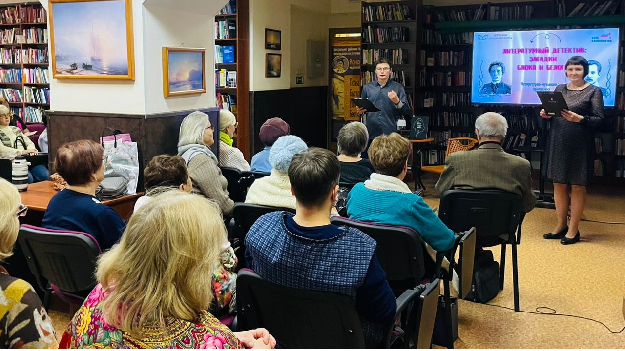 Вместе с сотрудниками Центральной городской библиотеки и клинскими поэтами, посетители отправились в захватывающее путешествие в мир тайн и загадок, связанных с творчеством двух классиков. «Расследование» коснулось не только известных стихотворений Блока и Белого, но и менее изученных страниц их биографий. Посетители с интересом узнавали о сложных взаимоотношениях поэтов, об их творческих исканиях и философских взглядах, оказавших огромное влияние на русскую литературу XX века. Это было уникальное сочетание стихов, интересной информации и музыки. Изюминкой встречи стало выступление талантливого музыканта Дмитрия Каширина, исполнившего свои авторские композиции. Мелодии, наполненные лиризмом и драматизмом, словно вторили настроению стихов Блока и Белого, создавая неповторимую атмосферу Серебряного века. Вечер получился очень теплым, ярким и уютным: зрители по-новому взглянули на творчество и судьбы Александра Блока и Андрея Белого, прочувствовав многогранность и загадочность двух столпов Серебряного века.