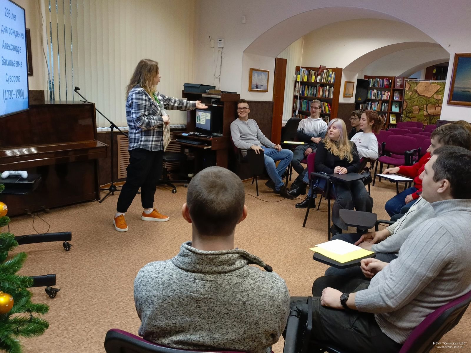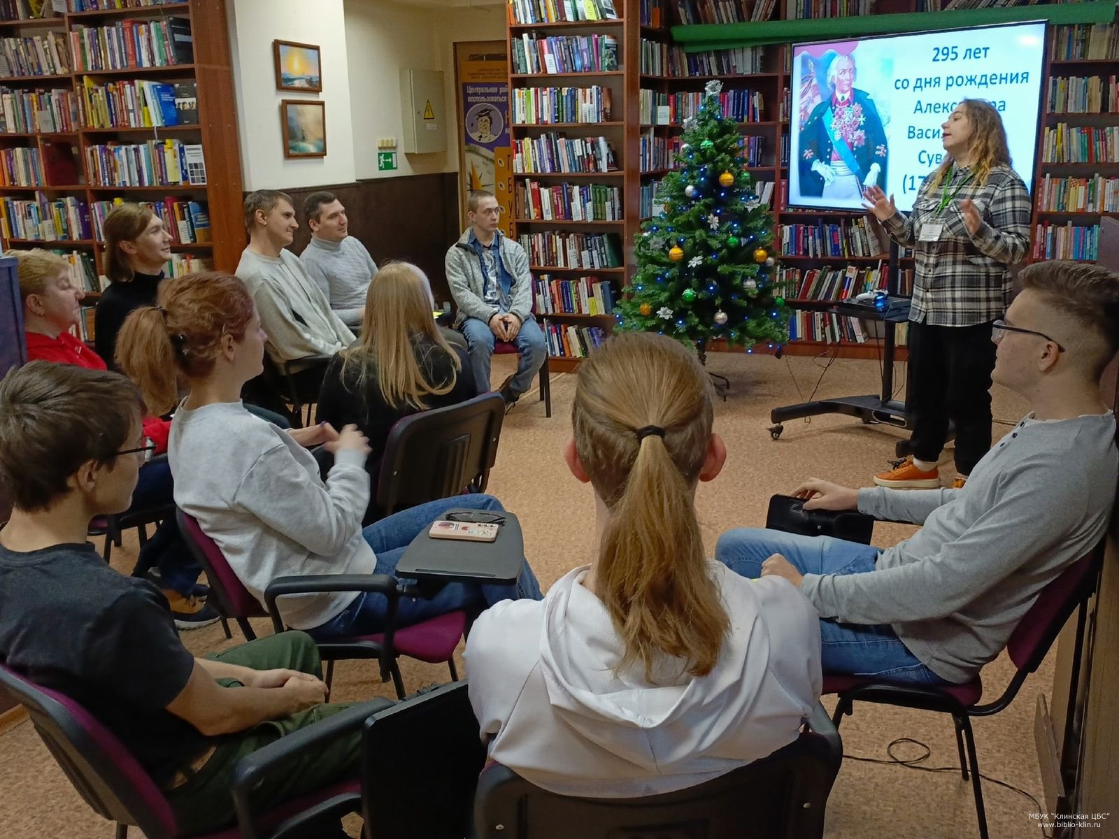 30 ноября в Центральной городской библиотеке прошла интерактивная программа «В далёкие времена», посвященная 295-летию со дня рождения Александра Васильевича Суворова — легендарного русского полководца, генералиссимуса, основоположника русской военной теории. Исторический экскурс и интерактивная игра погрузили участников во времена службы и подвигов Александра Суворова, который является символом самоотверженного служения Родине, доблести и чести. Его имя стало для нашей страны олицетворением несгибаемого духа, мужества и великих побед.