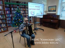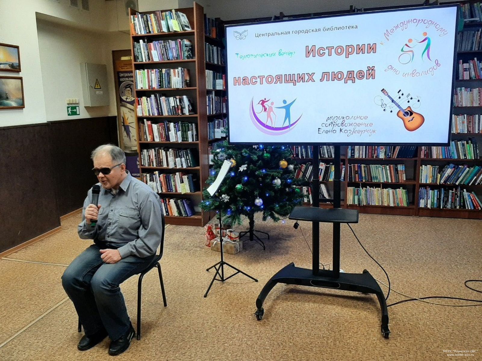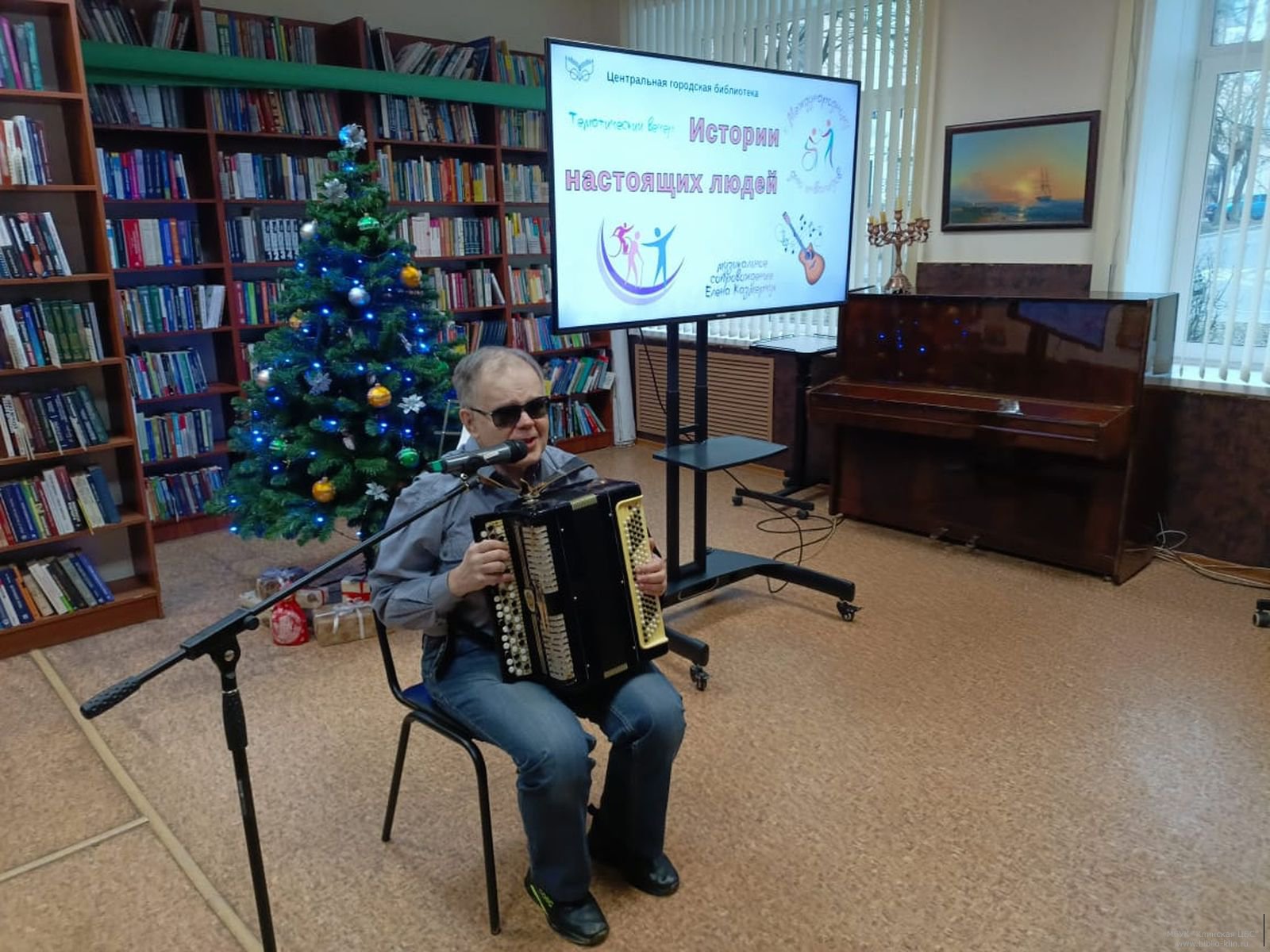 5 декабря в Центральной городской библиотеке прошел тематический вечер «Истории настоящих людей», посвященный Международному дню инвалидов. Гости встречи стали свидетелями настоящего творческого чуда. Андрей Рыбаченко, инвалид по зрению, покорил зал своей многогранностью: его пронзительные стихи, авторская музыка, виртуозная игра на баяне и душевный вокал создали мощную, искреннюю атмосферу.