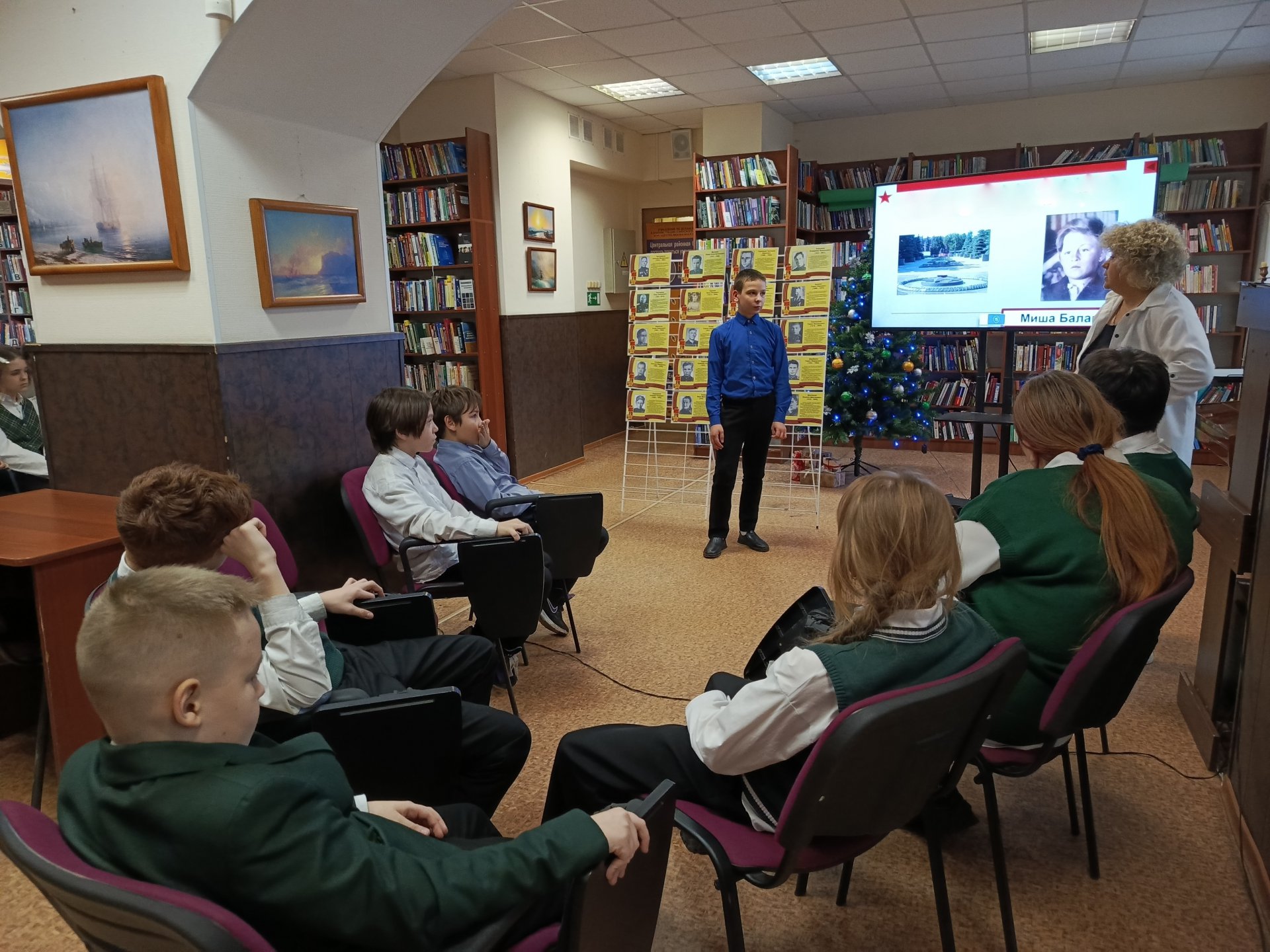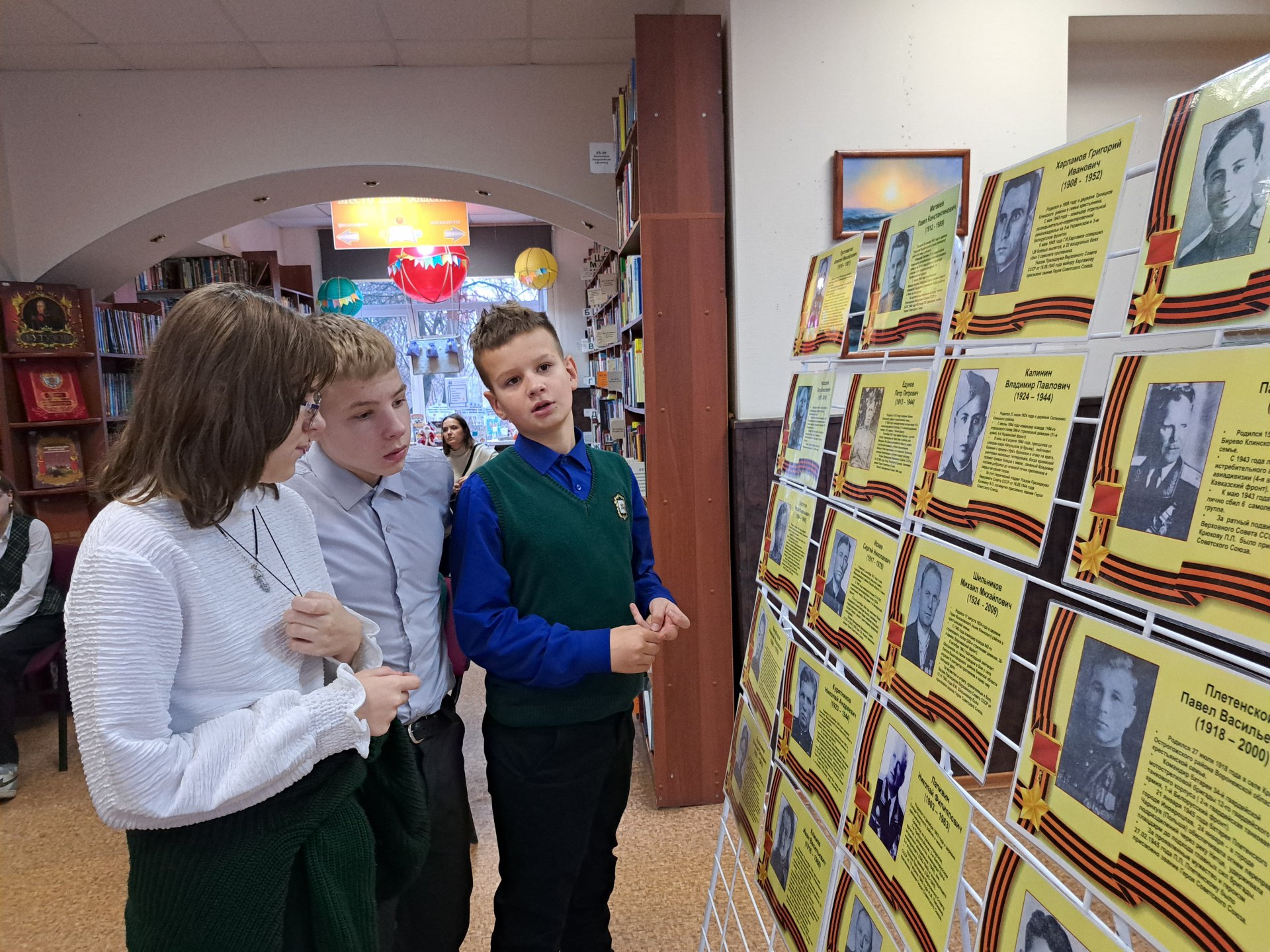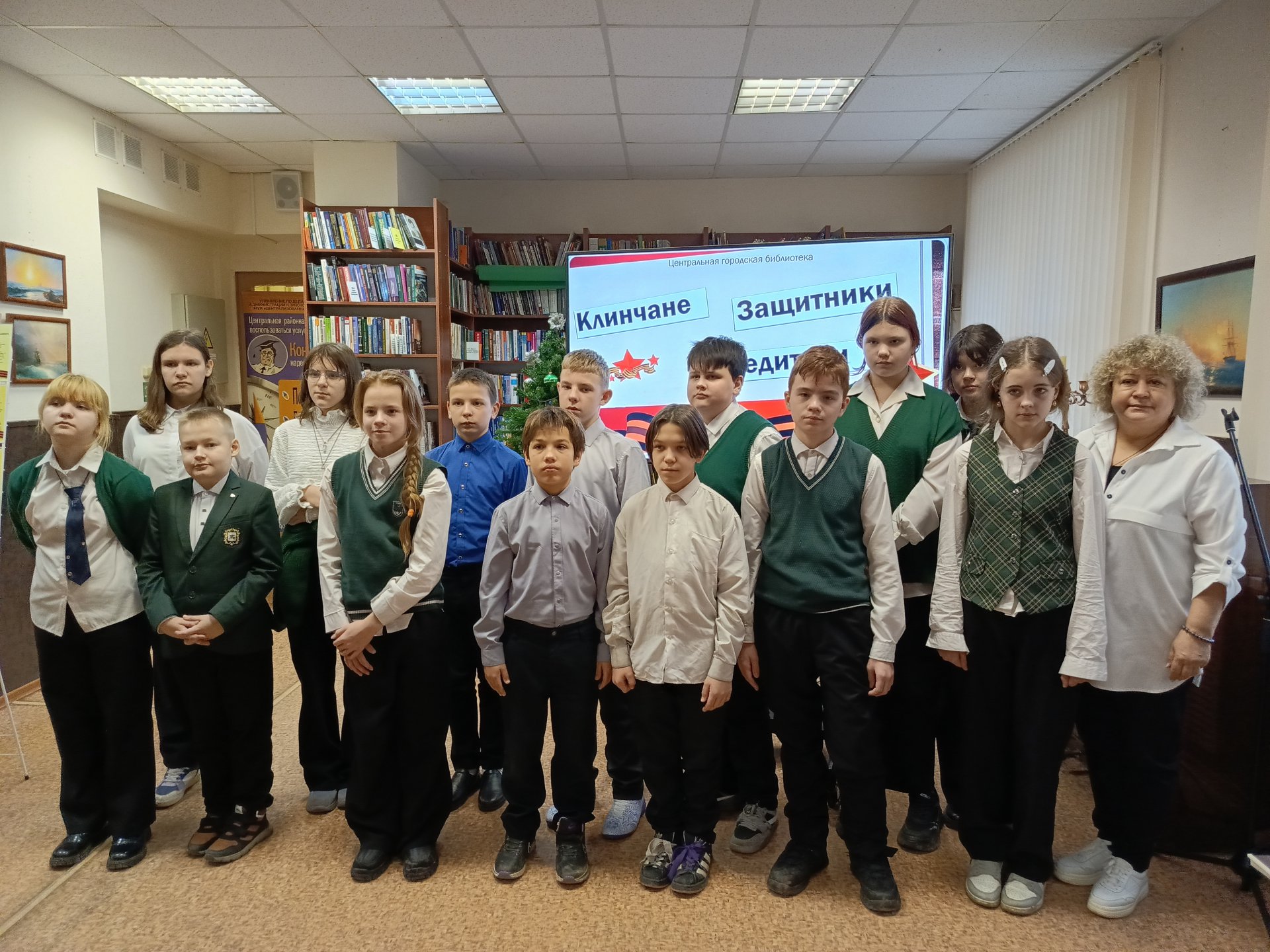 Краеведческая программа «Клинчане. Защитники. Победители», приуроченная к памятной дате — Дню Героев Отечества, прошла 5 декабря в Центральной городской библиотеке. Активное участие в ней приняли юные клинчане из гимназии им. В. И. Танеева. Они внимательно слушали рассказы ведущего и отвечали на вопросы о подвигах защитников Отечества, о клинчанах — Героях Советского Союза, получивших высокие звания в годы Великой Отечественной войны, о тружениках тыла, внесших свой вклад в дело Победы. Говорили об увековечивании памяти героев в Клину и округе. Гимназисты с особой гордостью называли улицы с именами клинчан-героев, на которых они проживают.