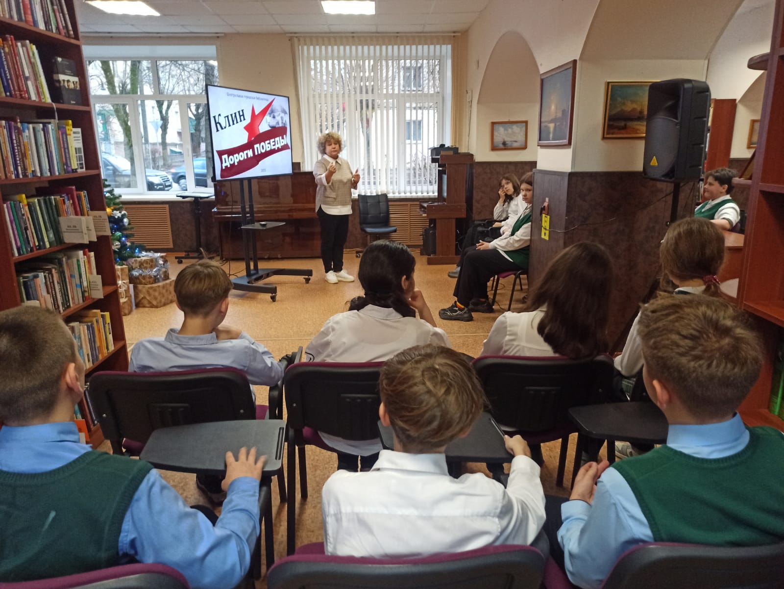 12 декабря в Центральной городской библиотеке прошла краеведческая интерактивная программа «Клин. Дороги Победы», посвященная 84-й годовщине освобождения Клина советскими войсками от немецко-фашистских захватчиков. Активное участие в ней приняли юные клинчане из гимназии им. В. И. Танеева. Особое внимание ребят было обращено на роль Клина и района как одного из важных рубежей в битве за Москву в годы Великой Отечественной войны. Гимназисты внимательно слушали военную историю родного края, рассказы о подвигах советского народа, дружно отвечали на вопросы. Их особо тронули документальные кадры военной кинохроники, снятой в Клину в декабре 1941 г. Освобождение Клина 15 декабря 1941 г. стало одним из ярких примеров героизма и стойкости защитников нашей Родины.
