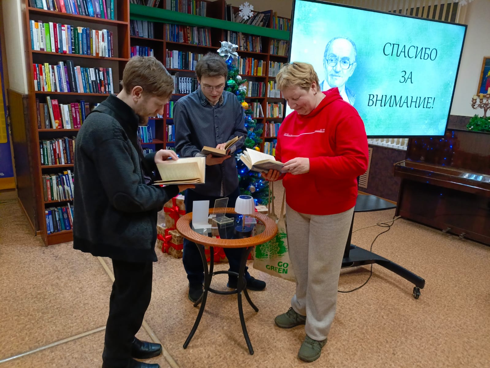Присутствующие задавали вопросы, после мероприятия просмотрели издания, составившие собрание сочинений писателя. Вечер прошёл в тёплой и дружеской атмосфере.