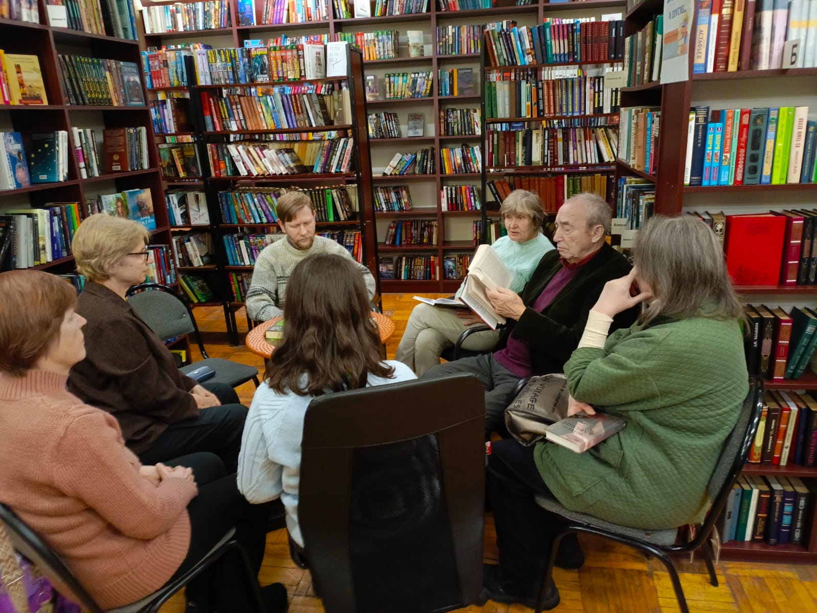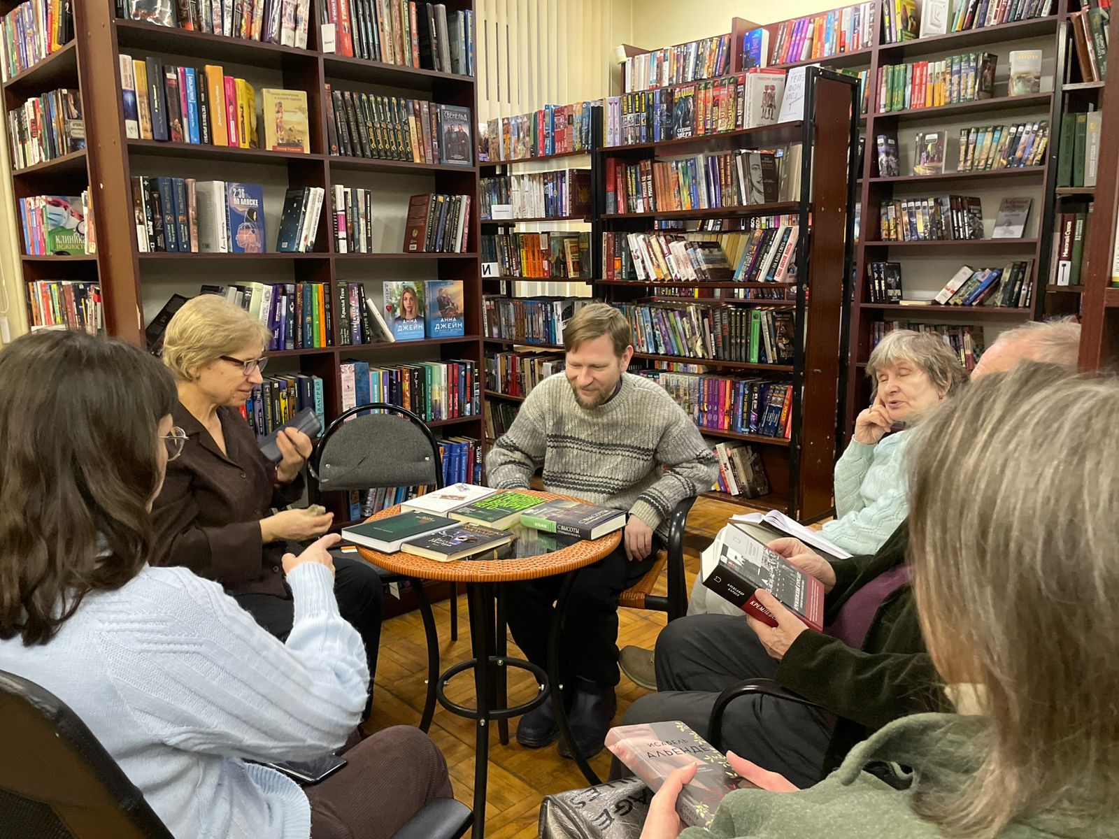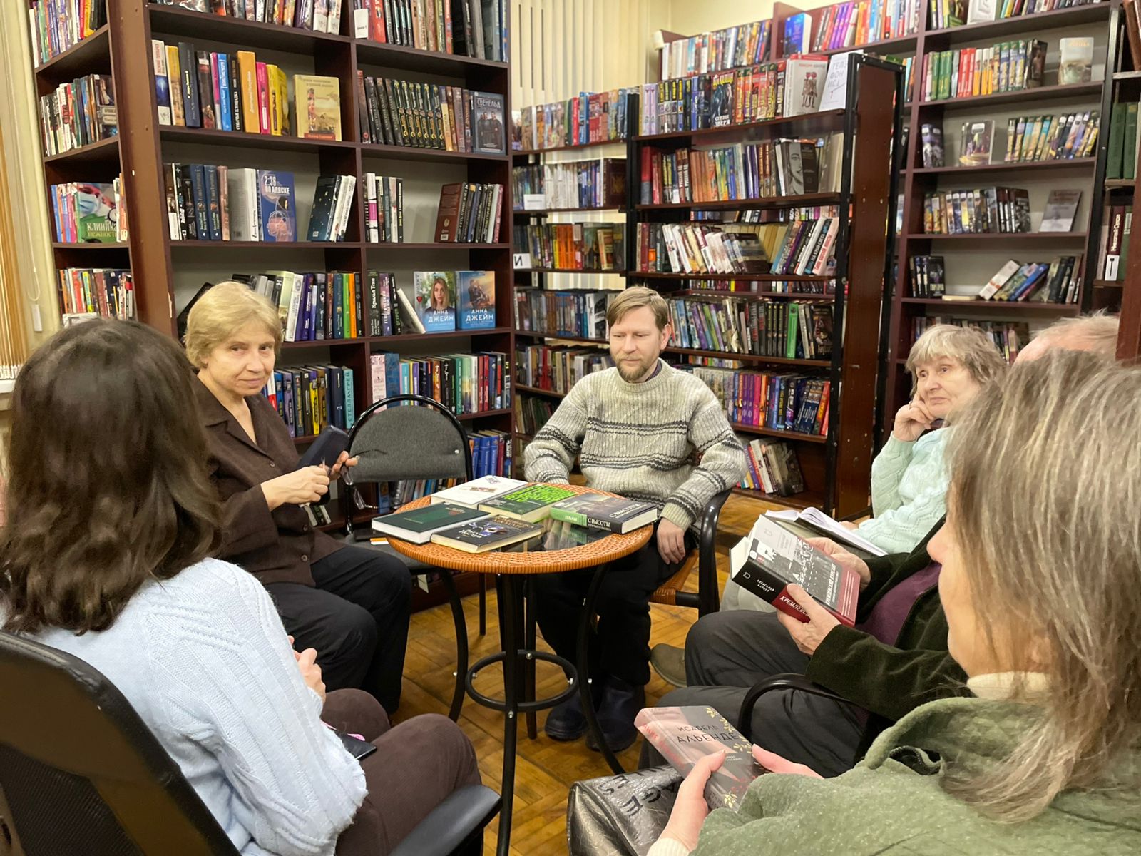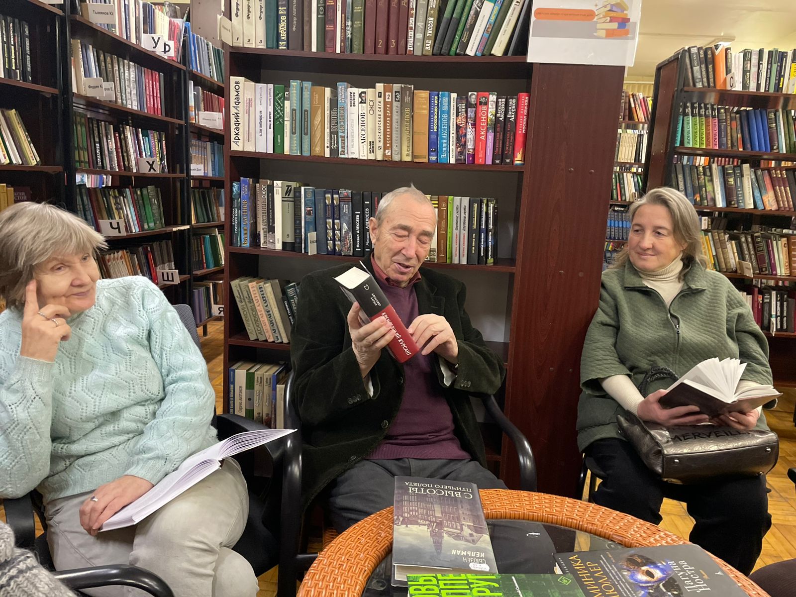 23 декабря в Центральной городской библиотеке в клубе «Читающие люди» прошла встреча под названием «Моя лучшая книга года». Члены клуба выбрали лучшие книги уходящего 2025 года, ориентируясь на свои предпочтения в современной российской и зарубежной прозе. Ими оказались роман «Девяностые» Романа Сенчина, «Мадонна с пайковым хлебом» Марии Глушко, роман Алексея Сальникова «Петровы в гриппе и вокруг него» и книга Александра Карцева «Кремлёвский курсант: записки военного разведчика». В дружественной, предновогодней обстановке, царившей в клубе, участники представляли свои собственные, не похожие ни на чьи, обзоры каждой из книг и зачитывали для всех запомнившиеся им места из полюбившихся романов.