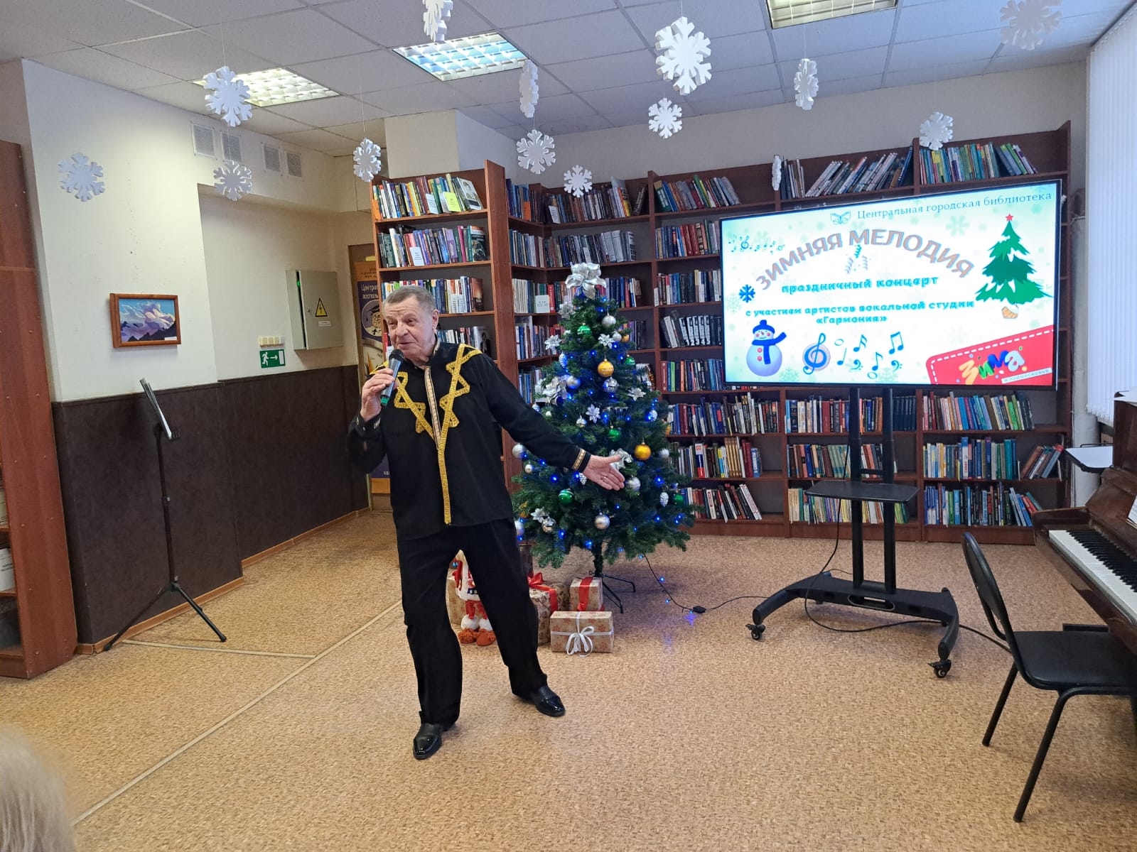 3 января, когда за окном Зима-чародейка рисовала морозные узоры, в Центральной городской библиотеке царила особая атмосфера. Здесь прошёл праздничный концерт «Зимняя мелодия» в исполнении артистов вокальной студии «Гармония». Для гостей прозвучали любимые песни о зиме, счастье и любви. Публика тепло принимала каждое выступление, подпевая знакомым мотивам и награждая музыкантов аплодисментами.