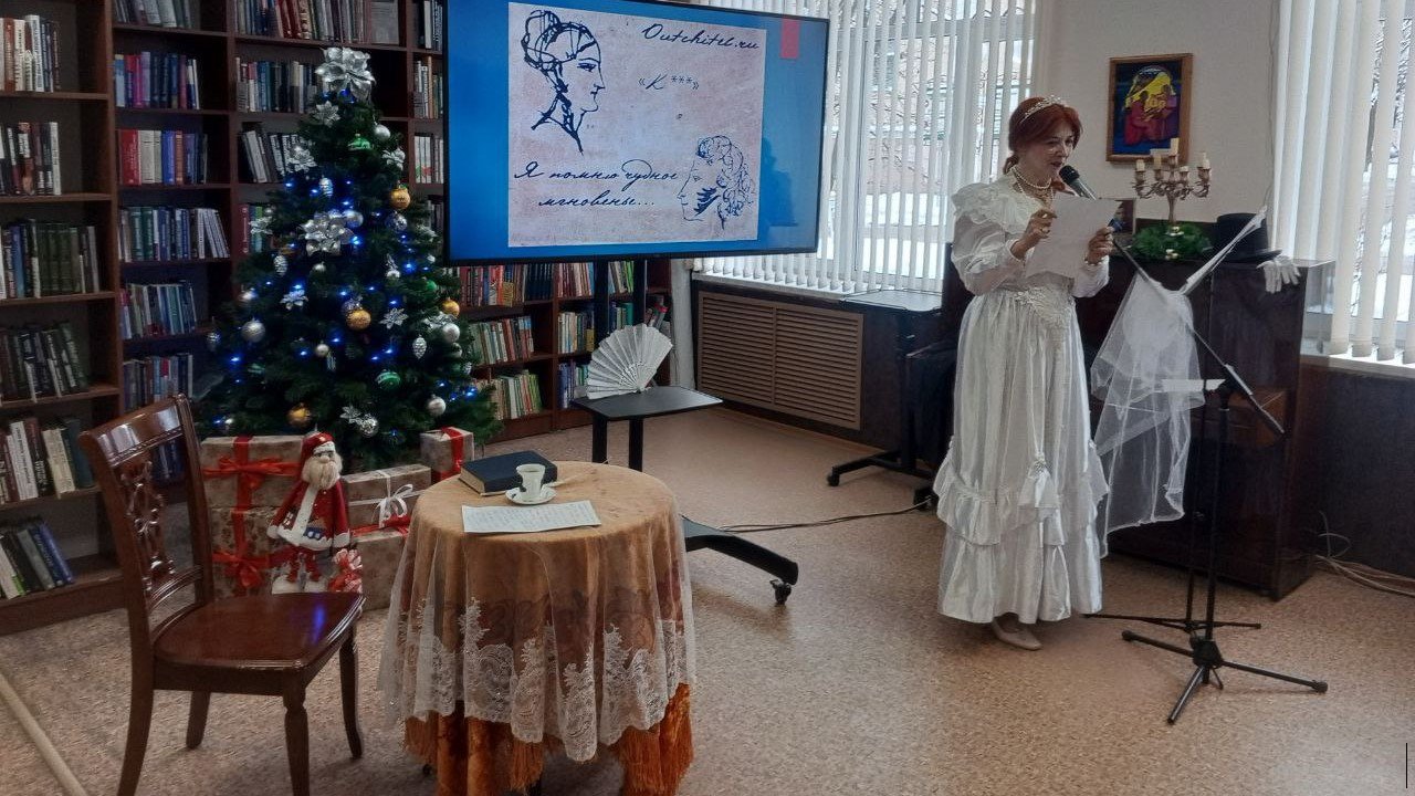 4 января в Центральной городской библиотеке прошел моноспектакль Натальи Клягиной «История одного романа. Александр Пушкин и Анна Керн». Он погрузил зрителей в эпоху великого поэта, его музу и стихи, посвященные ей.