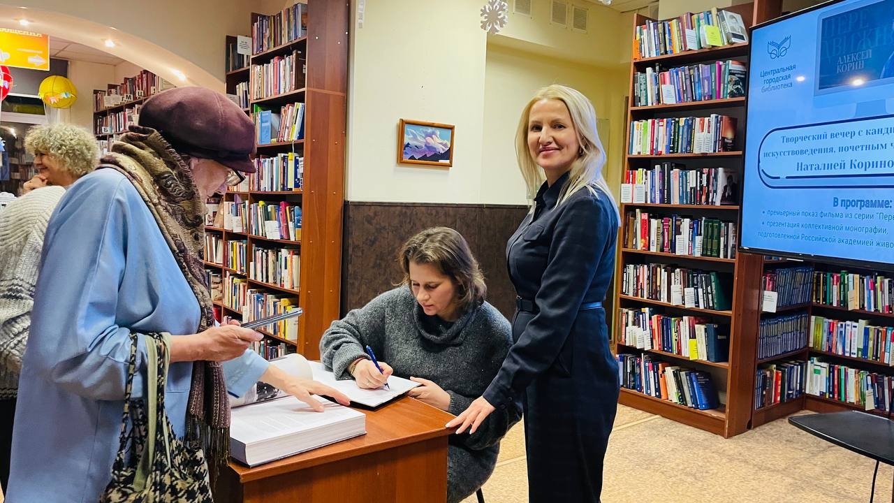 16 января в Центральной городской библиотеке состоялась творческая встреча с Наталией Кориной, правнучкой известного художника Алексея Михайловича Корина. В программе вечера состоялся премьерный показ фильма из серии «Передвижники» канала «Культура». В центре сюжета — художник-передвижник, профессор живописи и академик А. М. Корин. Художник незаслуженно забытый, но его картины поражают душевностью, обаянием и глубоким смыслом. Наталия поделилась подробностями о создании фильма. Рассказала о самых интересных моментах, которые возникали в процессе работы.