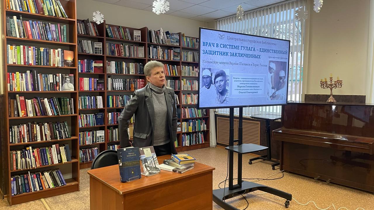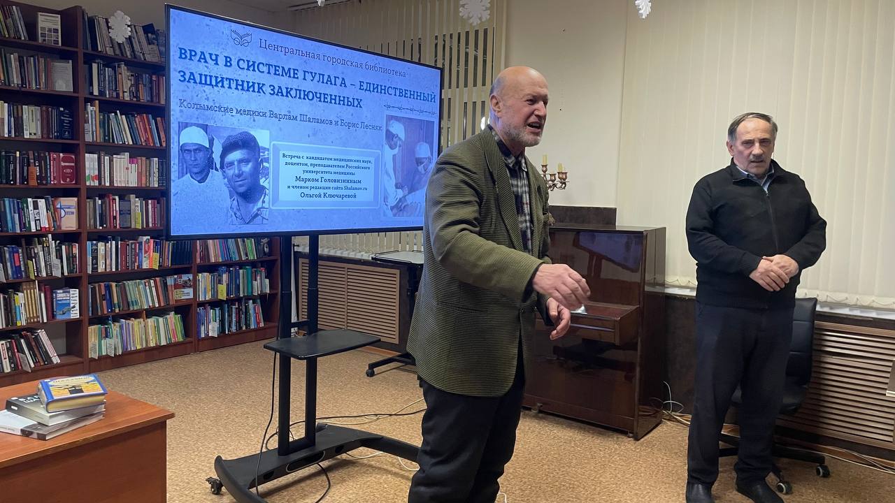 27 января в Центральной городской библиотеке прошла увлекательная лекция «Врач в системе ГУЛАГа – единственный защитник заключенных» (Колымские медики Варлам Шаламов и Борис Лесняк). Гостями вечера стали кандидат медицинских наук, доцент, преподаватель Российского университета медицины Марк Головизнин и член редакции сайта Shalamov.ru Ольга Ключарева. Марк Васильевич погрузил аудиторию в одну из самых сложных и малоизученных страниц истории — медицину в условиях колымских лагерей.
