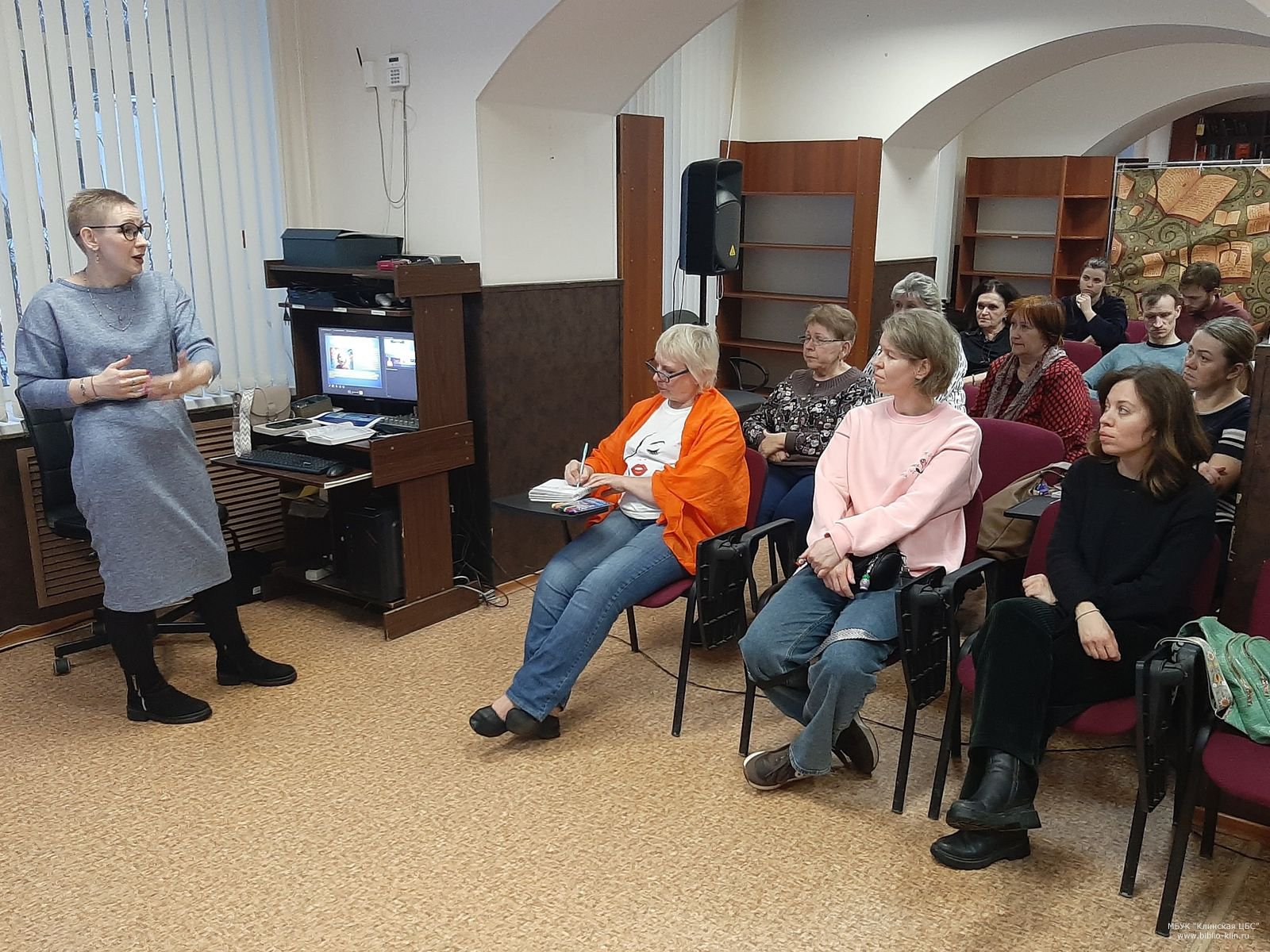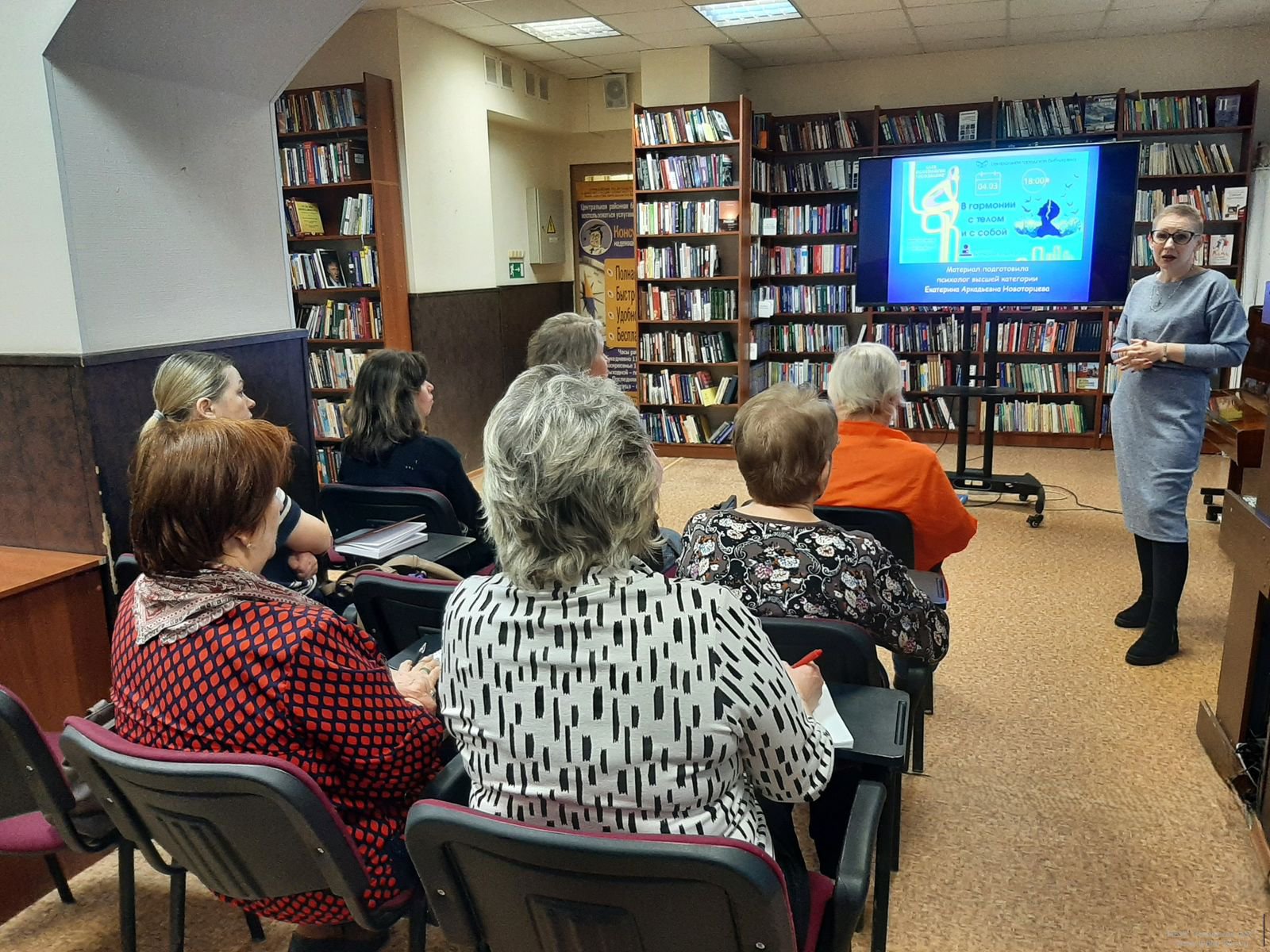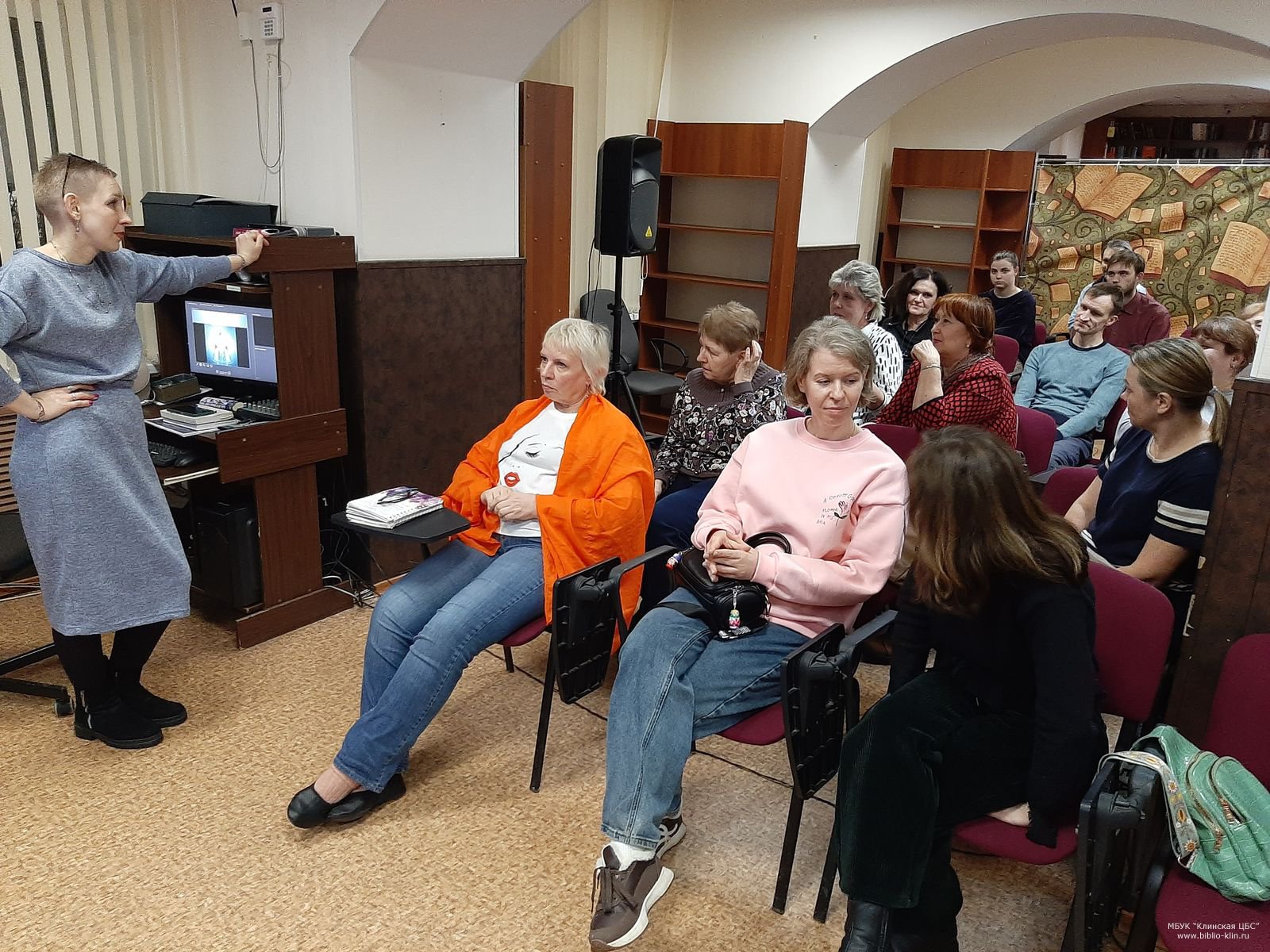 4 марта в Центральной городской библиотеке состоялось очередное занятие клуба любителей психологии «Осознание». Встреча была посвящена психосоматике и называлась «В гармонии с телом и собой». Спикером выступила Екатерина Аркадьевна Новоторцева, опытный клинский психолог, хорошо известная в городе.