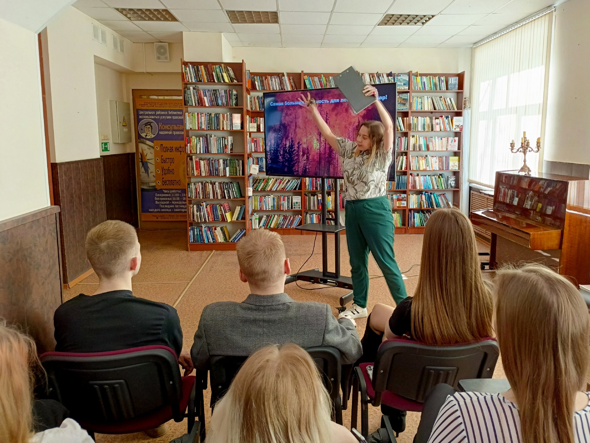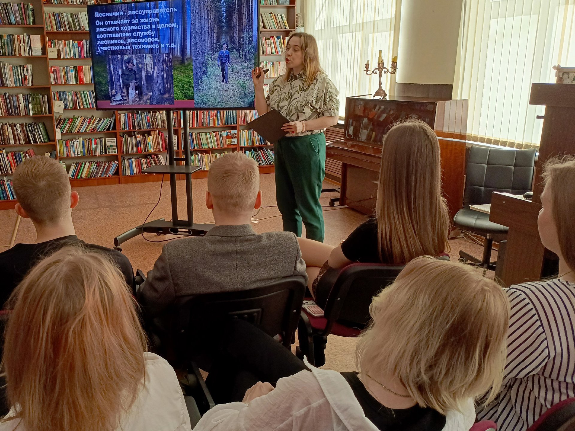 11 марта в Центральной городской библиотеке прошла интерактивная программа «Лесные профессии», посвященная Всемирному дню защиты лесов. Учащиеся гимназии имени В. Н. Татищева узнали о разнообразии профессий лесного хозяйства, связанных с управлением лесными ресурсами, исследованием биоразнообразия и охраной природы. На примере обязанностей сотрудников лесного хозяйства участники встречи рассмотрели, какие качества, навыки и знания необходимы таким специалистам. В рамках интерактивной программы погрузились в звуки леса и пение разных птиц, попробовали себя в роли некоторых профессий: распознавали деревья, собирали съедобные грибы, подмечали следы животных и птиц.