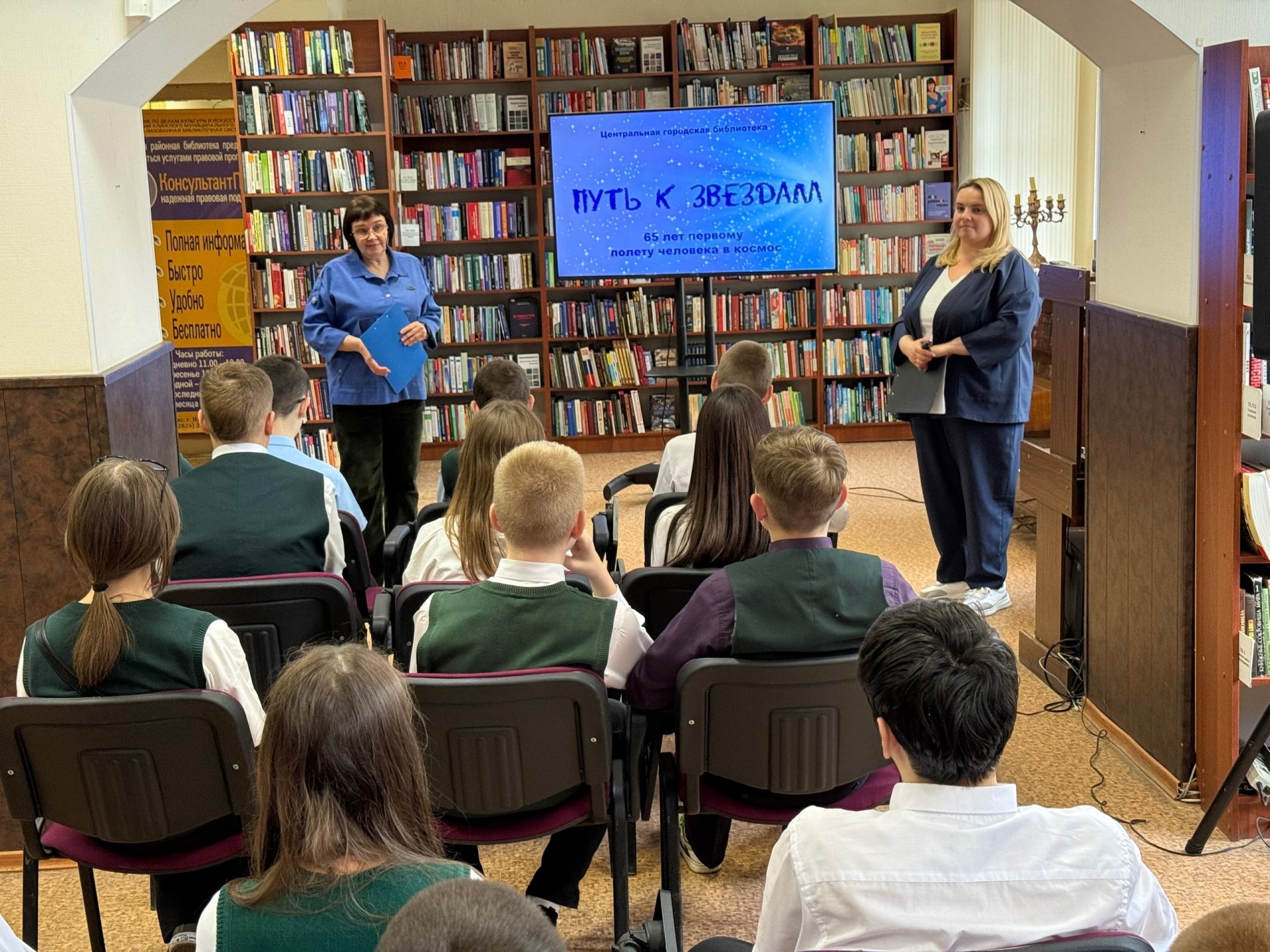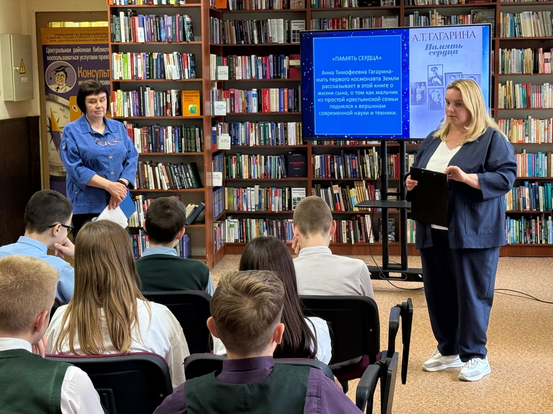 16 апреля в Центральной городской библиотеке прошёл час истории «Путь к звёздам», приуроченный к 65-летию первого полёта человека в космос. Вместе с учениками гимназии им. В. И. Танеева сотрудники библиотеки разобрали главные мифы и риски легендарного старта. Отдельный, очень тёплый момент встречи посвятили семье Ю. А. Гагарина. Ребята узнали о книге Анны Тимофеевны Гагариной «Память сердца» — удивительных воспоминаниях матери о сыне. Завершилась встреча космическим диктантом «Мечты о звёздах». Ученики проверили знания и, возможно, открыли для себя что-то новое о той эпохе, когда фраза «Поехали!» изменила историю навсегда.