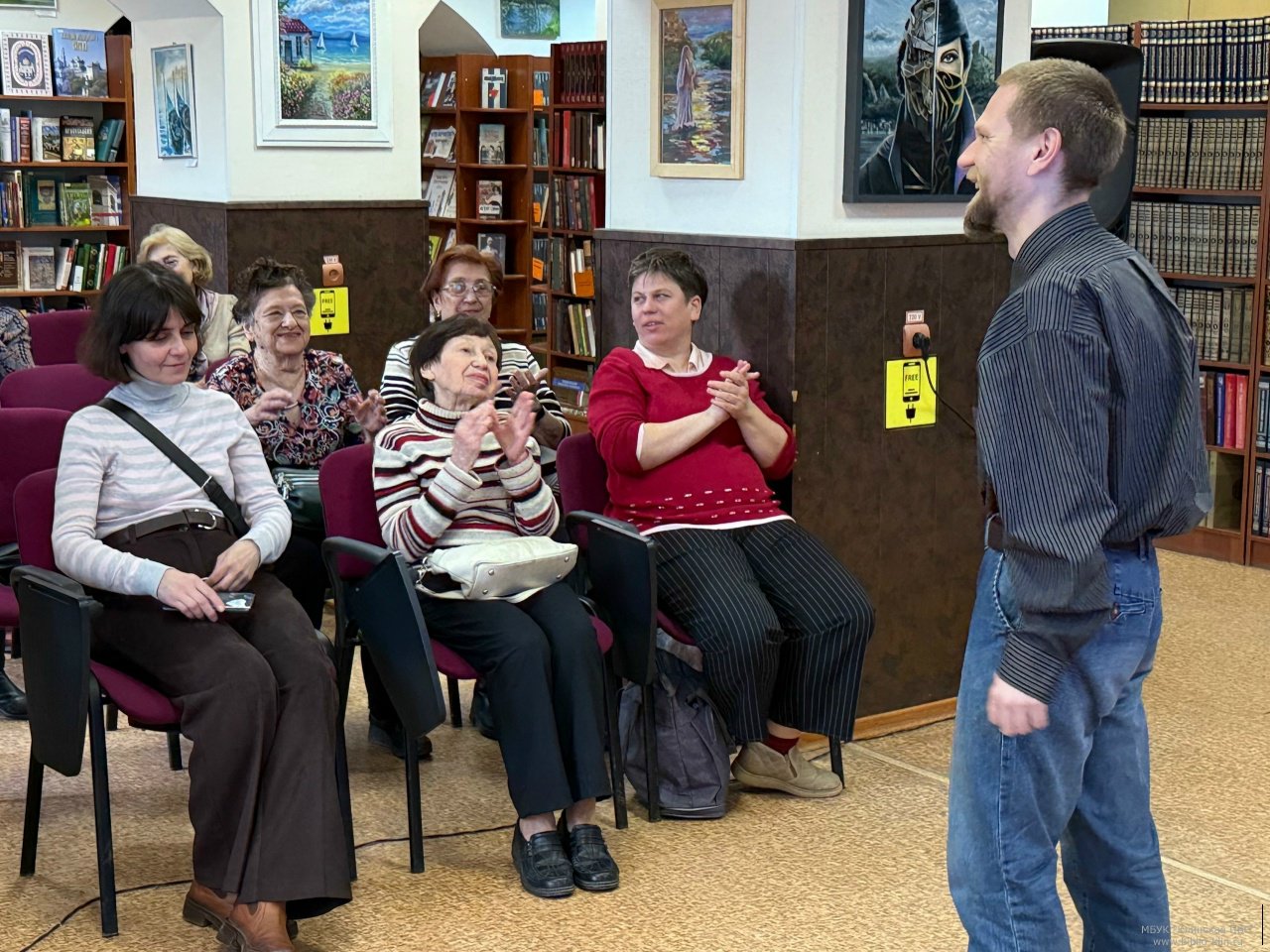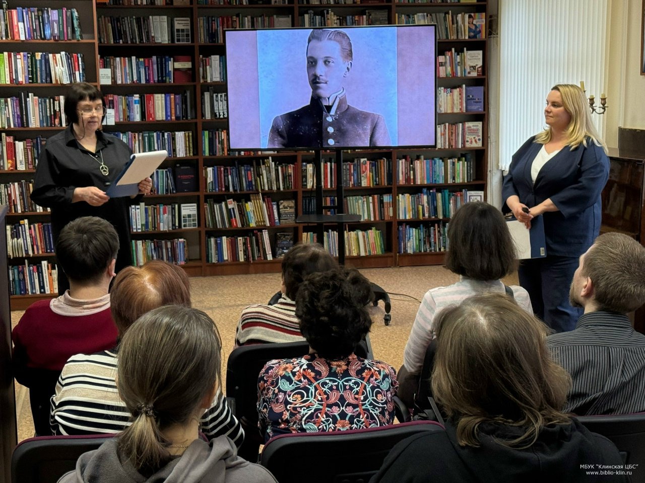 Читатель библиотеки Дмитрий Иванов поделился своим отношением к Николаю Гумилёву. Прочитал свои стихи, посвящённые поэту. Слушатели долго не расходились, впечатлённые вечером.