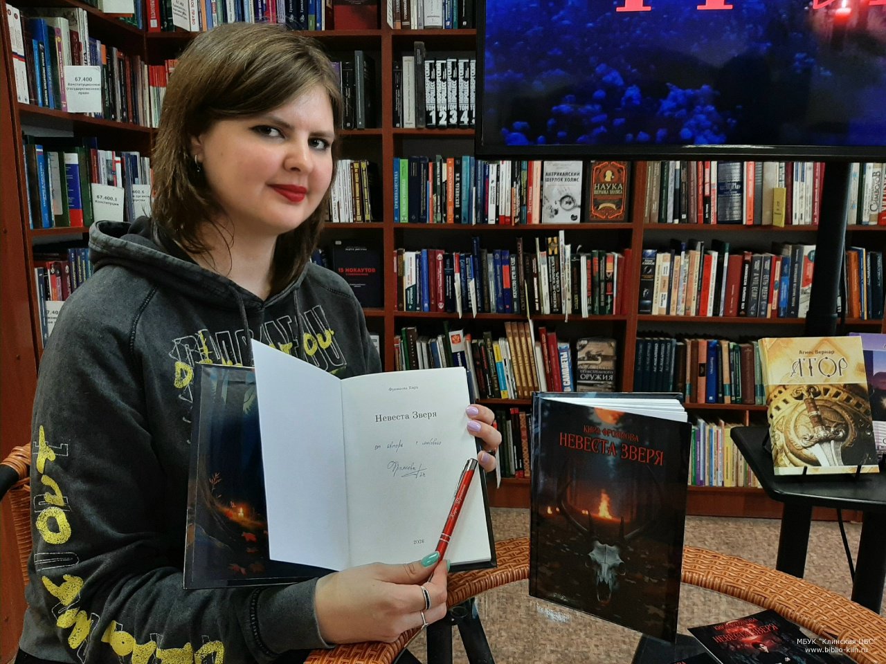 26 апреля в Центральной городской библиотеке прошла встреча поклонников мистического фэнтези, фолк-хоррора и всех, кто хотел познакомиться с писательницей Кирой Фрояновой. В клубе «КиВИ» прошла яркая презентация её книги «Невеста зверя», которая собрала много гостей.